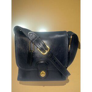 VTG Coach Shelburne Flap 9038 Navy Leather Brass Turn Lock Crossbody Bag 90s USA