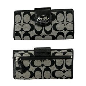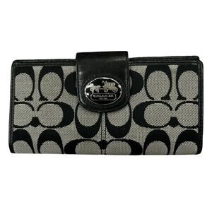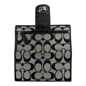 VTG Coach Signature Canvas Jacquard with Snap Closure in Gray and Black