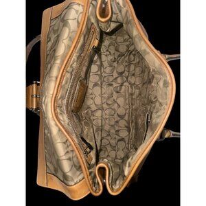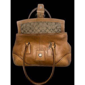 This sophisticated vintage Coach bag in tan leather is a striking piece for any wardrobe. The spacious interior, featuring Coach's iconic pattern, offers ample storage for daily essentials, while the sturdy handle ensures comfortable carrying. A classic choice for those who appreciate timeless fashion.