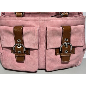 VTG Coach Suede Soho Double Buckle Flap Shoulder Bag Pink Tote Large Satchel Y2K