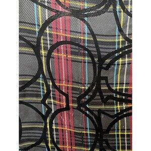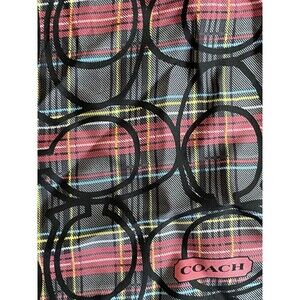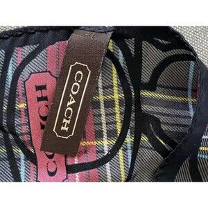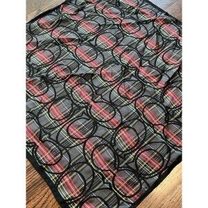 VTG Coach Tartan Plaid Signature C Pattern 21" Scarf Black Red 100% Silk RARE