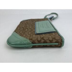 VTG Coach Wristlet Wallet Monogram Brown Canvas Teal Patent Leather Classic