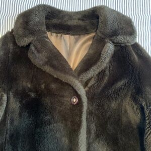 VTG Coat Soft Faux Fur brown Button Pea Coat Borgana Sportowne Teddy Small-Med