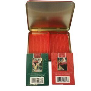📌 Condition: Pre-Owned, Excellent Vintage Condition – Both decks are factory sealed and unused. Tin shows only light surface wear from storage—clean, smoke-free, and pet-free.