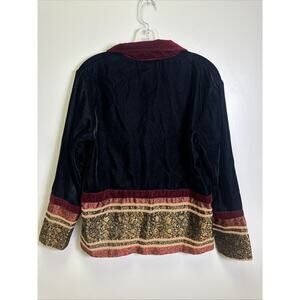 VTG Coldwater Creek Blazer Jacket S Velvet Black Red Patchwork Holiday