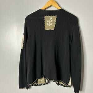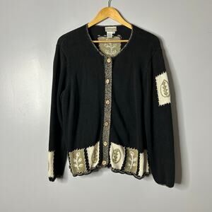 VTG Coldwater Creek Fall Patchwork Cardigan Sweater Wood Button Womens 1x Black
