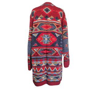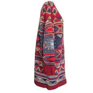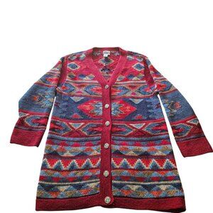 Vintage Coldwater Creek Long Cardigan Sweater Coat Women's Size Large L. Original Buttons, Aztec Southwestern design. Check pictures for measures.