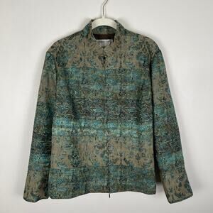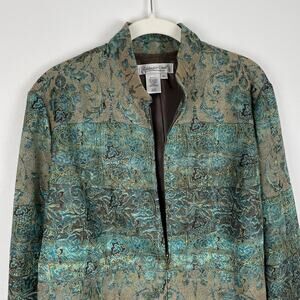 VTG Coldwater Creek Tapestry Jacket LP Green Floral Shimmery Boho Fairy Grunge