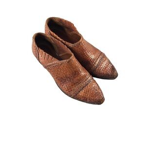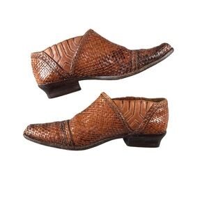 VTG Cole Haan Boho Tan Woven Pointy Toe Low Ankle Booties Western Cowgirlcore