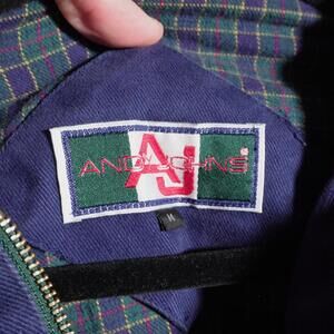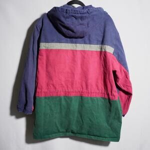 VTG Color Block Canvas Jacket Mens M Blue Red Green Full Zip Hood Retro 80s 90s vintage Andy Johns primary colors pockets hooded streetwear y2k colorful kid core heavy duty plaid blanket lined