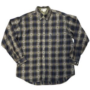 VTG 90s Columbia Button Up Shirt Mens L Flannel Southwest Aztec All Over Print Plaid