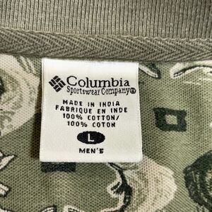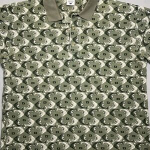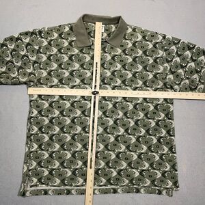 VTG Columbia Polo Shirt Men Size Large Fish All‎ Over Print Short Sleeve Green
