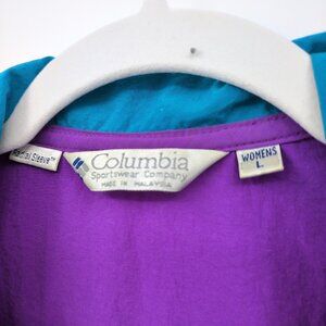 Vintage, Columbia, Windbreaker, 90s, Retro, Radial Sleeve, Nylon, Hiking, Camping, Outdoor, Y2K, Purple, Teal, Lightweight, Packable, Boho Western, Gorpcore, Festival, Streetwear, Bright, Coastal Cowgirl