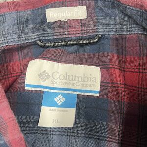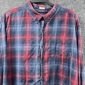 VTG Columbia Shirt Mens XL Red Blue Plaid Long Sleeve Pocket Button Down Casual