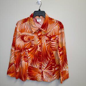 VTG Company Collection Womens Linen Blend Button-Up Shirt Tropical Size PL