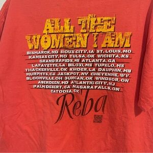 Vibrant red tee with bold Reba design. Perfect for casual outings.