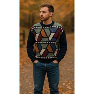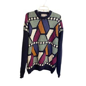 VTG Concrete Mix Sweater L Geometric Knit Colorblock 80s Retro Cosby Coogi Style