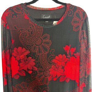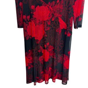 Keywords: floral dress, long sleeve dress, Connected Apparel, black red dress, size 16 dress, professional dress, fall fashion, sheer overlay dress, women's clothing, modest dress, spandex dress, polyester dress, Sri Lanka dress, whimsigoth, dark fairy, dark floral dress, maxi dress