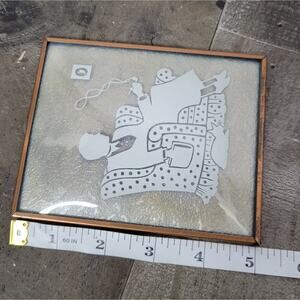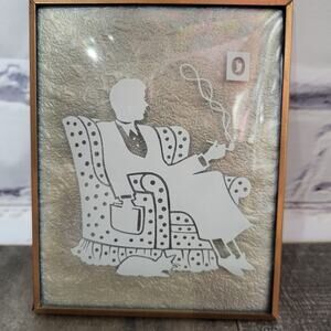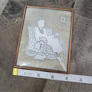 VTG Convex Glass Reverse Painting, Man in Chair with Cat, 4x5