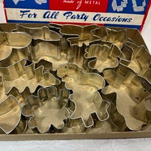 VTG Cookie Cutters (12) Made Of Metal For All Party Occasions ORIGINAL Box