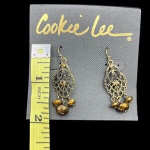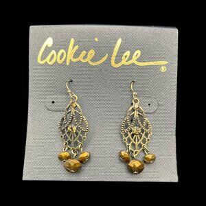 VTG Cookie Lee Earrings Gold Tone Dangle Chandelier Amber Color Crystal Bead NEW