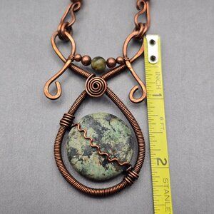 VTG Copper Wire Wrapped Jasper Pendant Necklace 18" Adjustable Length Statement