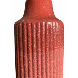 VTG Coral Ceramic Textured Vase With Ribbed Design Red Orange 7.25" Tall
