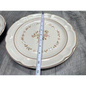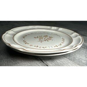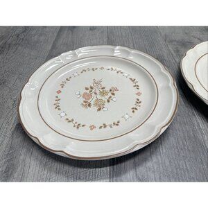 VTG Cordella Stoneware Burnet Dinner Plates 10.5" Cream Brown Floral Set of 2