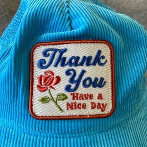 VTG Corduroy Hat Thank You Have A Nice Day Trucker Mesh Back Patch Script