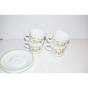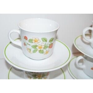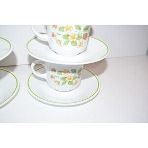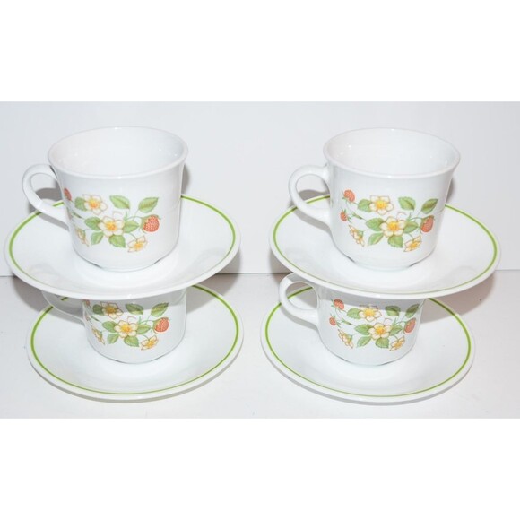 VTG Corelle USA Strawberry Sunday Sundae Coffee Tea Cups Mug Saucers SET OF 4