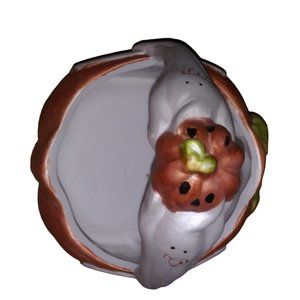 Pre-owned Halloween and Fall ceramic pumpkin ghost basket, in good condition. Please view all photos for baskets general used condition and measurements.