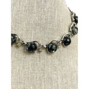 VTG Coro Lucite Confetti Necklace Gray Silver Tone 1950s Jewelry Round Signed 16"