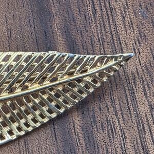 Keywords: Corocraft, brooch, pin, gold tone, leaf, vintage, costume jewelry, textured, openwork, statement piece, retro, collectible, jewelry, accessory