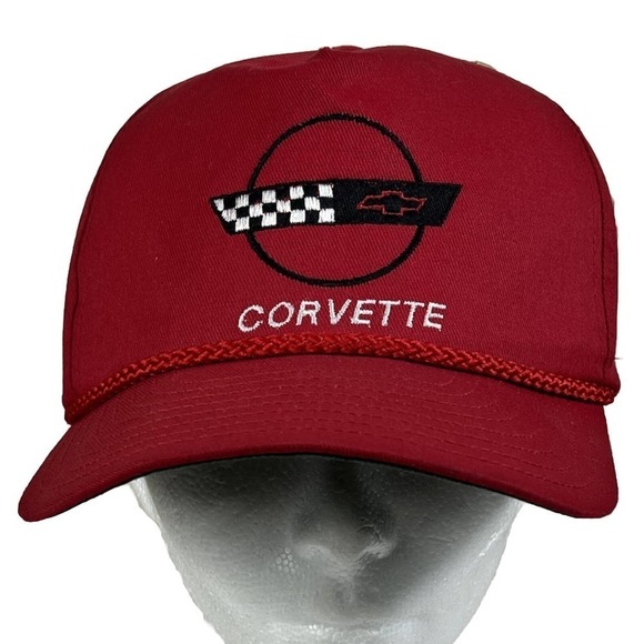 VTG Corvette Hat 80s Snapback Trucker Hat Chevy Racing Corded Fleece Lined Cap