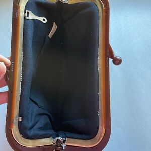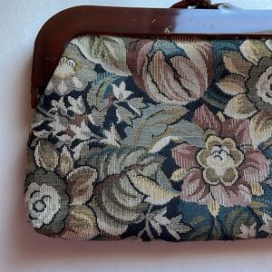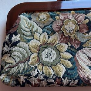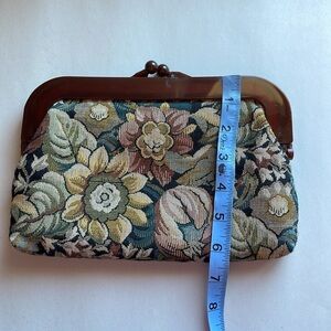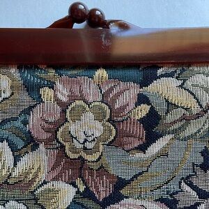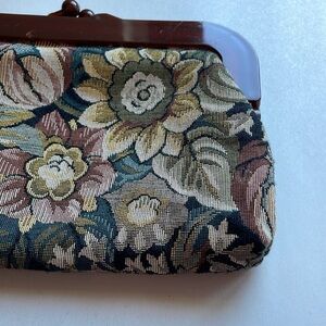 VTG Cottagecore Clutch Woven Jacquard Tapestry Purse Floral Mauve Bag Kiss 90s