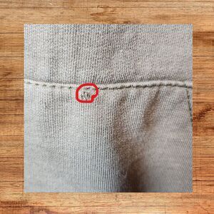THERE IS AN AREA JUST UNDER THE LACE THAT LOOKS LIKE IT MAY HAVE HAD A STICKER ON IT? IT DID NOT COME OUT IN THE WASH, BUT I DID NOT STAIN TREAT IT. THERE IS ALSO A TINY HOLE ON THE KANGAROO POCKET. IT IS NOT ALL THE WAY THROUGH AND VERY MINIMAL. BOTH THESE AREAS ARE IN MY PICTURES.