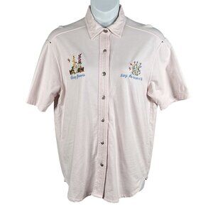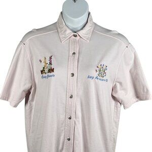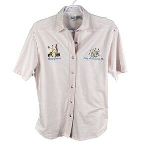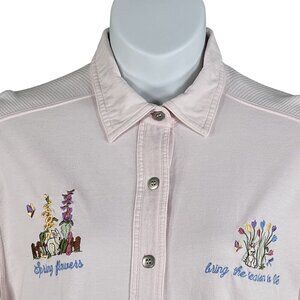 VTG Cotton P.S.I. 2XL Button-Up T-Shirt Embroidered Spring Flowers Easter Bunny