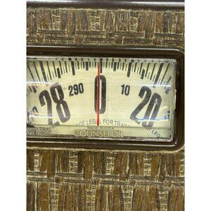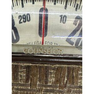Vintage 1960s Counselor bathroom scale with a wicker basket weave design. Mid-century retro style, functional and decorative for display or use.