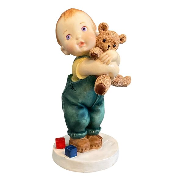 A charming 1998 Jeremy Boy figurine by Country Artists, featuring a "Hug Me Tight" teddy bear. Perfect for collectors and fans of vintage decor.