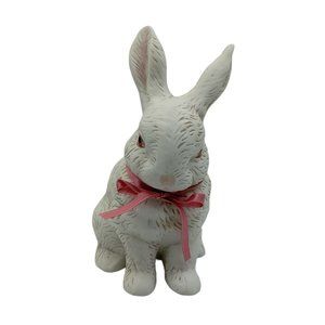 VTG Country Porcelain Bunny Rabbit With Pink Ribbon TW7353 Easter Centerpiece