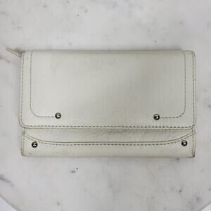 VTG Cow Leather Bi-fold Checkbook Wallet White Ivory Card Slots Simple Classic