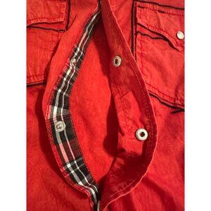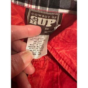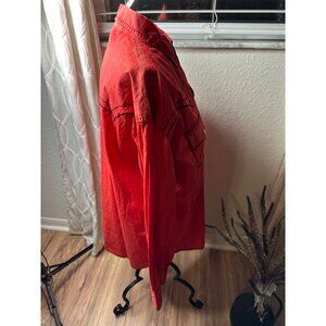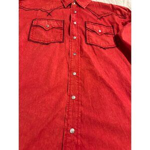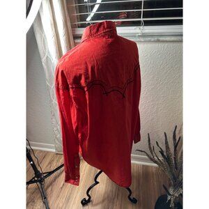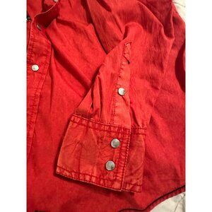 A vibrant red vintage washed shirt with a classic fit, perfect for casual or western-inspired outfits. Its durable cotton material ensures lasting wear.