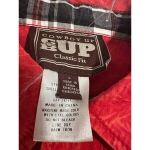 VTG Cowboy Up Embroidered Cotton Woven Snap buttons Mens L shirt flipp cuffs