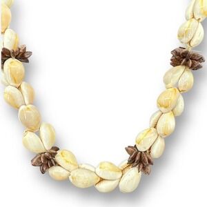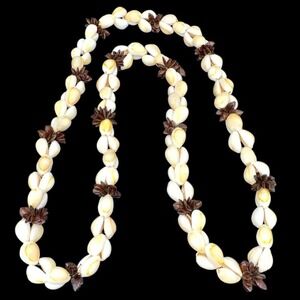 VTG Cowrie Momi Shell Koa Seed Lei Long Necklace