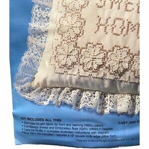 Vintage NIP Creative Moments Home Sweet Home Candlewick Kit Lace Edged Pillow Needlepoint