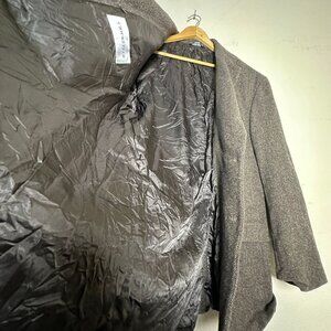 wool blazer sport coat, brown herringbone pattern, vintage Cricketeer branding, men’s size 46L, 90s formal style, good condition - lambswool - 23 inch sleeve