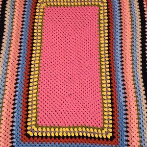 VTG Crochet Colorful Afghan Blanket 79x49in Pink Bed Throw Shell Stitch Handmade