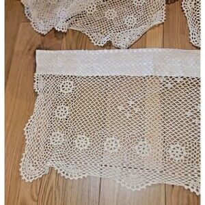 VTG Crochet Curtains Top Treatment Valances Cafe Boho 100% cotton Crochet Beige