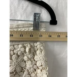 The shorts come in a size M with a 27 inch waist size and have a 3 inch inseam. They're made from 100% cotton and 100% polyester material and feature a beautiful floral pattern with crochet accents. These Y2K black label shorts are perfect for juniors and women who want to add an element of vintage style to their wardrobe.