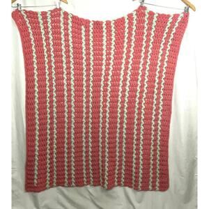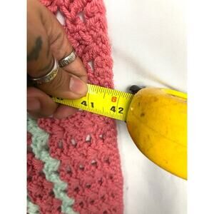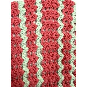 VTG Crocheted Afghan Blanket 42"x51" Handmade CottageCore Granny Coral Green